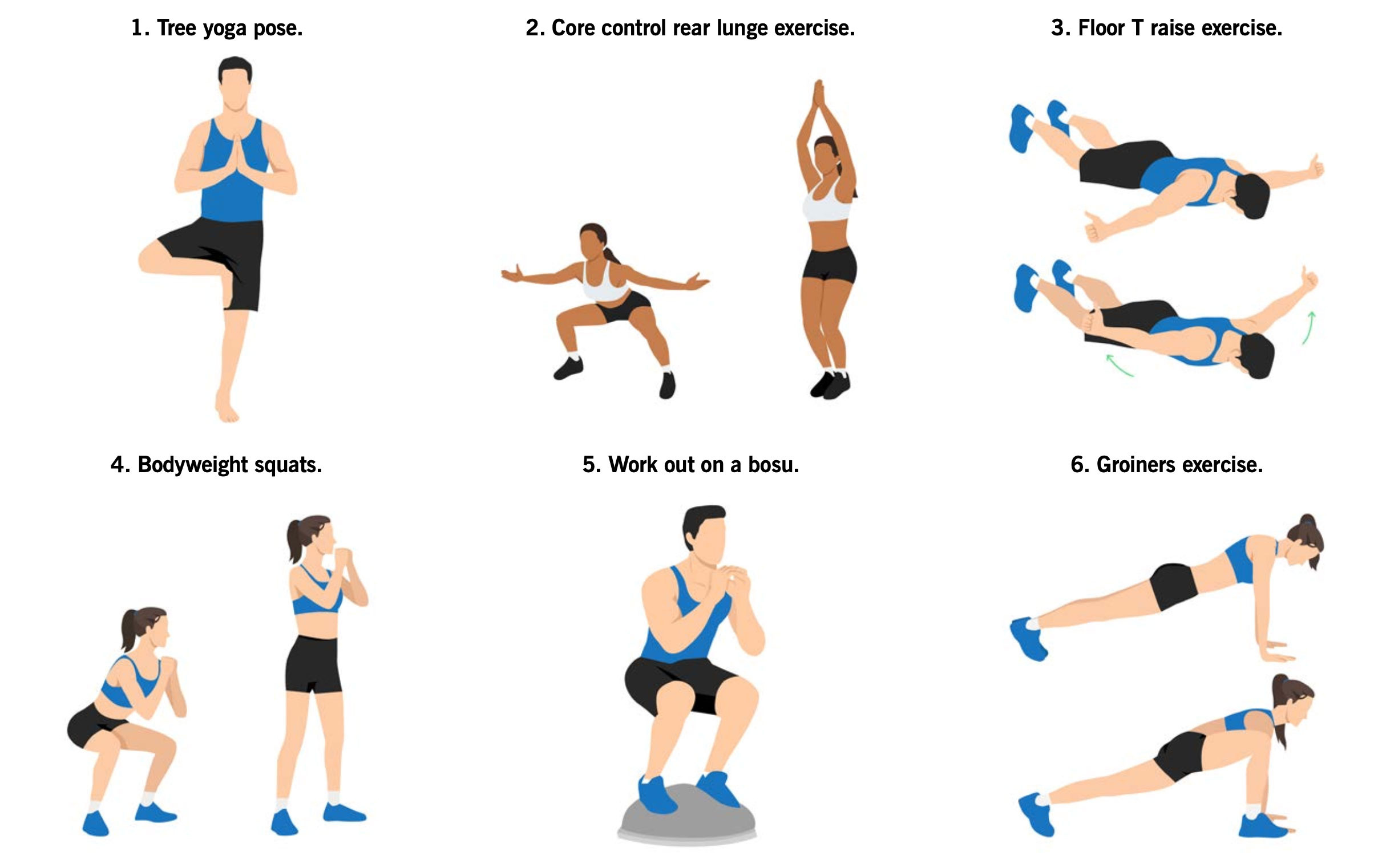 Also balance, postural and core strengthening can be very helpful – note some of the exercises we’ve included on page 35.