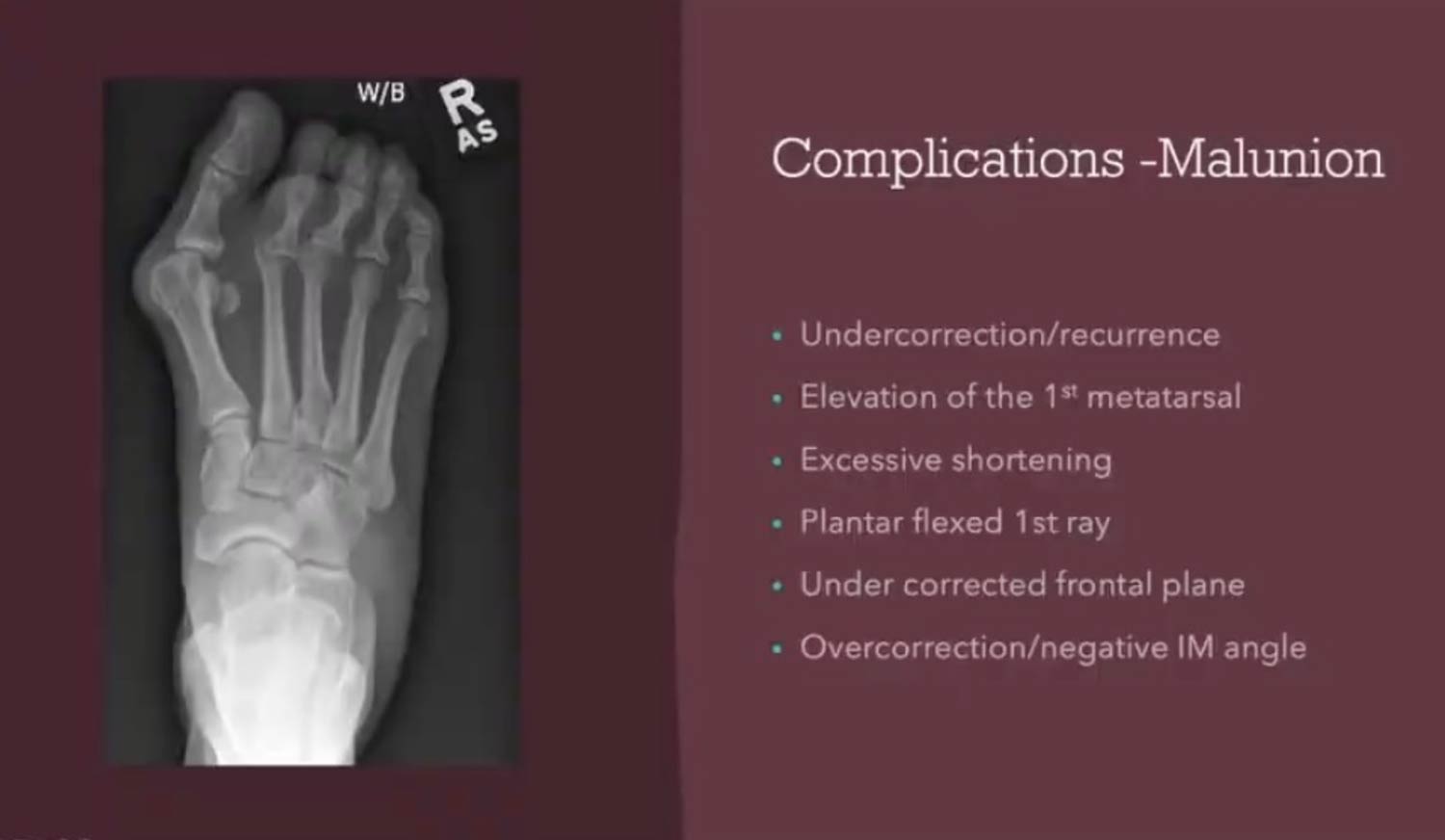 These malunions can be the result of placement of the first ray not in an ideal position during initially, technically complex surgery. It’s a failure of positioning, not a failure of biology.
