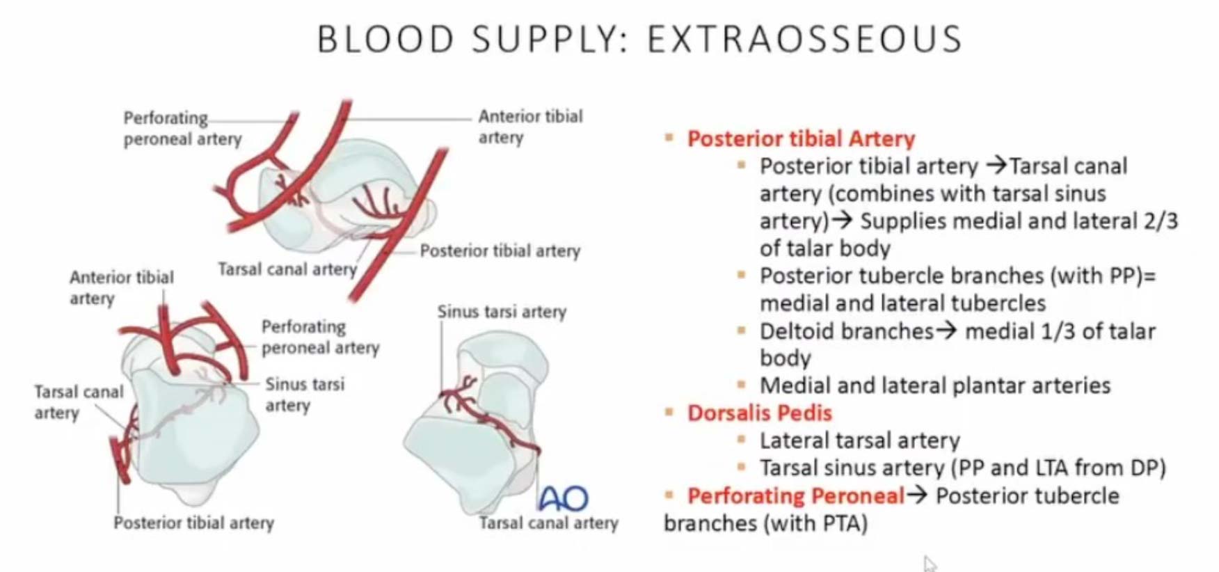 - High Cartilage Content: Approximately 60% of the talus is covered in cartilage, limiting areas for extraosseous blood supply penetration.