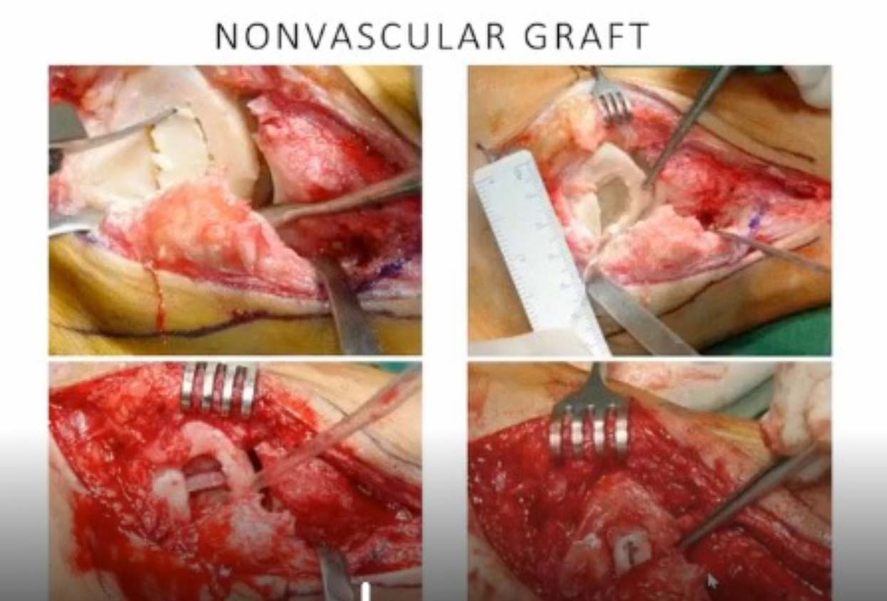 - Bone Grafting: Both vascularized and non-vascularized grafts can provide structural support and promote revascularization through creeping substitution. Non-vascularized grafts (eg, iliac crest) may offer structural support but not necessarily vascularization. Vascularized grafts (eg, pedicle from cuboid or calcaneal graft) are generally preferred for smaller, more superficial lesions (Hawkins/Fiscat 1–3) before true cortical collapse.