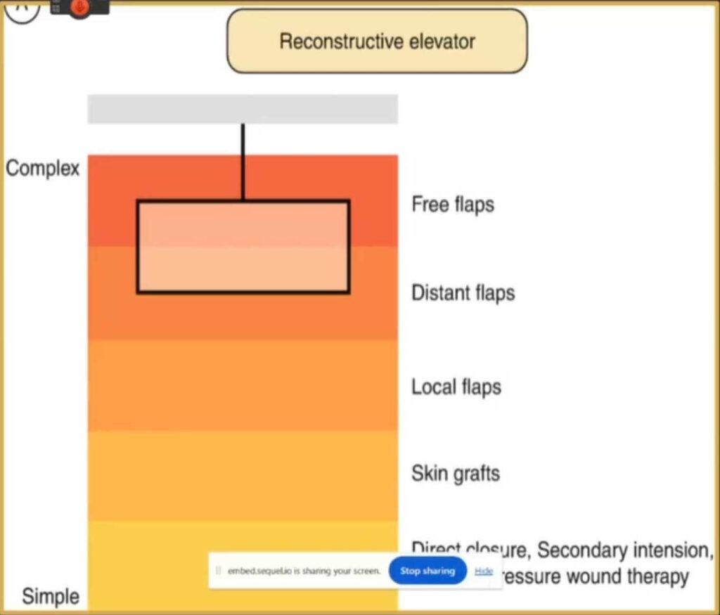 When managing Charcot soft tissue complications, the “reconstructive elevator” framework provides a strategic and tiered approach to selecting surgical techniques. This concept allows healthcare professionals to begin with simpler methods and progress to more advanced techniques as needed, optimizing the treatment process for each unique case.