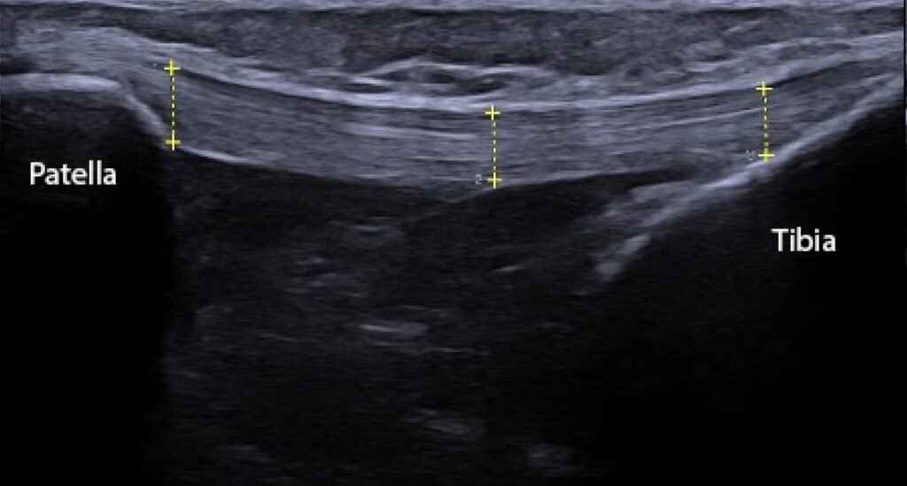 - Skou ST, Aalkjaer JM. Ultrasonographic measurement of patellar tendon thickness—a study of intra- and interobserver reliability. Clin Imaging. 2013;37(5):934-937.