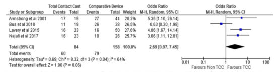 Figure. Forest plot of ulcer healing after wearing an offloading device at 12 weeks. TCC, Total Contact Cast; CI, Confidence Interval; M-H, Mantel Haenszel