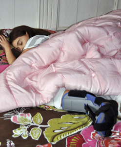 “Sometimes we’ll have the parents don the brace while a child is asleep,” Lin said. “It goes on the outside of the pajamas and is a fairly generic fit. Just make sure the Velcro strap is loose before starting because the tearing sound could wake a child up.”