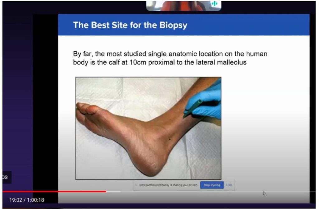 The best site for biopsy – by far the most studied anatomic location – is 10 centimeters proximal to the lateral malleolus, that spot has the most nerve endings (Figure 3).