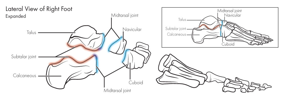 Initially, the practitioner would have the patient evaluated by performing an open kinetic chain examination by sitting and lying down. In this portion of the exam the practitioner is evaluating joint mobility, range of motion, integrity of ligaments and soft tissues, joint range of motion, symmetry of contralateral sides, muscle strength, leg length, and painful areas. If the patient is able to stand and ambulate, then a closed kinetic chain exam is performed. In closed chain pronation, the tibia internally rotates, the talus plantarflexes and inverts, and the calcaneus everts. Evaluation of posture, spine position, hips, pelvic tilt, knee position, and gait pattern is noted. Lastly, evaluation of shoe gear and any foot orthoses or braces should be noted. Performing a thorough history and physical examination and reviewing diagnostic testing should allow the practitioner to establish a working diagnosis and create a treatment protocol.