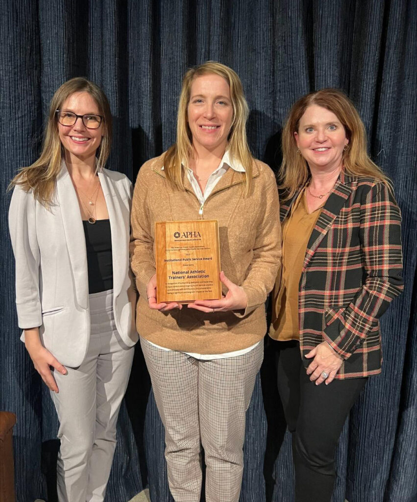 The National Athletic Trainers’ Association (NATA) received the American Public Health Association Injury Control and Emergency Health Services (APHA ICEHS) Section’s 2023 Institutional Public Service Award in November during APHA’s Annual Meeting and Expo in Atlanta.