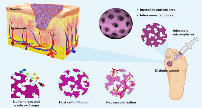 Researchers at the Terasaki Institute for Biomedical Innovation (TIBI) have developed a revolutionary injectable granular filler that could transform the way diabetic wounds are treated, potentially improving patient outcomes. The research team from TIBI and the University of Nebraska Medical Center (UNMC) developed a novel method combining electrospinning and electrospraying technologies to create porous, granular nanofibrous microspheres (NMs). These microspheres, made from biocompatible materials including poly(lactic-co-glycolic acid) (PLGA) and gelatin, can be easily injected into wound sites, making the treatment minimally invasive. .