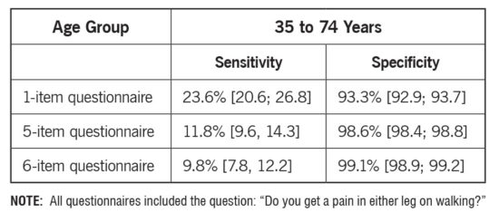 The authors recommend using this single, simple question as a first screening step in all patients who are at least 40 years old, as PAD prevalence already reaches 5% at this age in both women and men in high-income countries. If individuals answer “yes,” the next step should be an ABI measurement.
