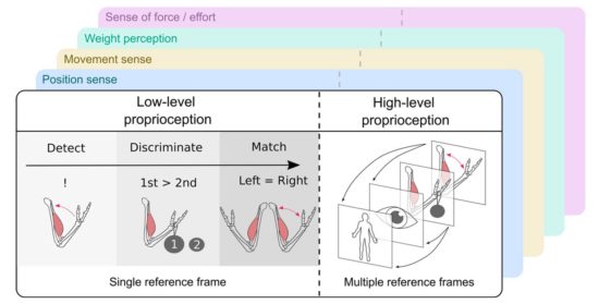 The proposed framework comprised of both low-level and high-level proprioception provides structure to the way researchers and clinicians could approach proprioception and its assessment. However, as with any new framework, it is necessarily tentative; it will evolve as new insights are gained, and clinicians and researchers put its logic to the test. Thus, we hope this Perspective serves as the catalyst for discussion and new lines of investigation.