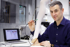 Scottish scientists have developed a low-cost, flexible device that can help prevent blood clots for patients after an operation. Their polymer-based sensor fits underneath bandages and compression stockings like a sticking plaster, and a handheld reader measures whether the bandage is exerting the correct pressure on the body.