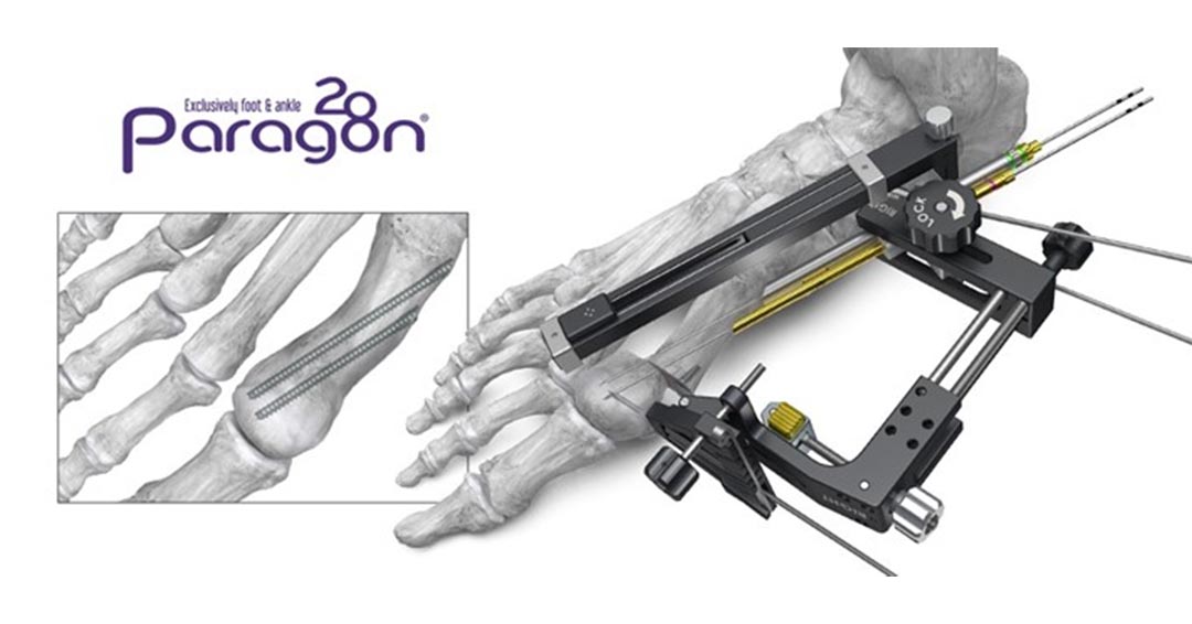Paragon 28’s PRECISION® MIS Bunion System was engineered to allow surgeons to complete a distal metatarsal osteotomy using a minimally invasive surgical (MIS) technique. The system features an outrigger designed for controlled triplanar correction including translation and derotation of the metatarsal head and adjustment of the distal metatarsal articular angle. Instrumentation is also provided to facilitate a free-hand technique. The system includes cannulated chamfer screws for fixation that allow alignment of the metatarsal head near the cortex of the first metatarsal. This minimally invasive technique is joint preserving, and the screw placement is designed to reduce the chance of soft tissue irritation.