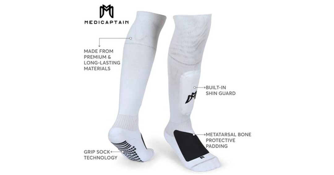 MediCaptain is an innovative sports protection brand that has released multiple sports socks with unique metatarsal padding. This padding offers a pragmatic solution for athletes seeking enhanced foot support. These socks deliver special protection to the metatarsal bone, a common spot of injury in cleated sports like soccer and rugby. The incorporation of advanced grip technology ensures improved traction on various surfaces, promoting stability and reducing the likelihood of slips or falls. Designed from breathable materials, these socks prioritize ventilation and moisture management, addressing concerns related to discomfort and skin issues during prolonged use. With reinforced arch support, athletes benefit from proper foot alignment, potentially reducing fatigue associated with diverse sports. Durable and versatile, MediCaptain Lite Grip Socks cater to the functional needs of athletes, providing reliable support for optimal performance and maximum protection. Available in small to extra-large sizes.