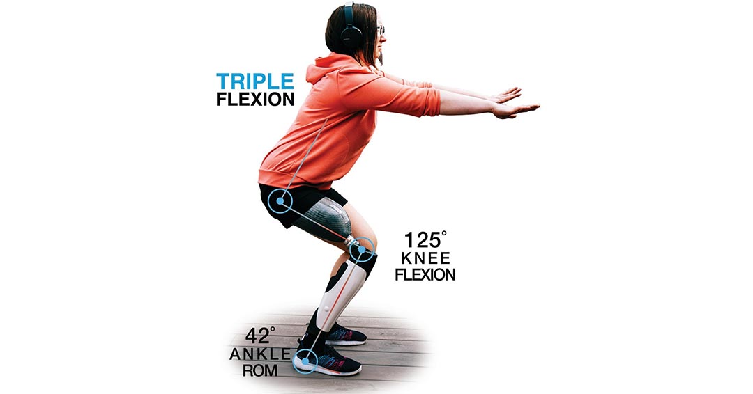 The SYNSYS microprocessor full-leg system is designed for low to moderate K3 activity levels. Only SYNSYS’ hydraulic kinetic coupling and hip-knee-ankle triple flexion with 125° degrees knee flexion and 42° ankle range of motion (ROM) allow users to intuitively descend stairs with the full foot flat on the step, easily squat and bend down, and have greater toe clearance. The prosthesis demonstrated greater stability with 92% longer flat foot time while walking and 2 times more toe clearance. Additionally, it looks and feels more natural than any prosthesis; the ankle ROM allows the foot to easily be placed under the seat in front of the user on public transportation for a more comfortable sitting position and decreases stresses on the socket. It also provides greater confidence with more shoe options than any other prosthesis available, a longer battery life (up to 10 days), and ease while walking.