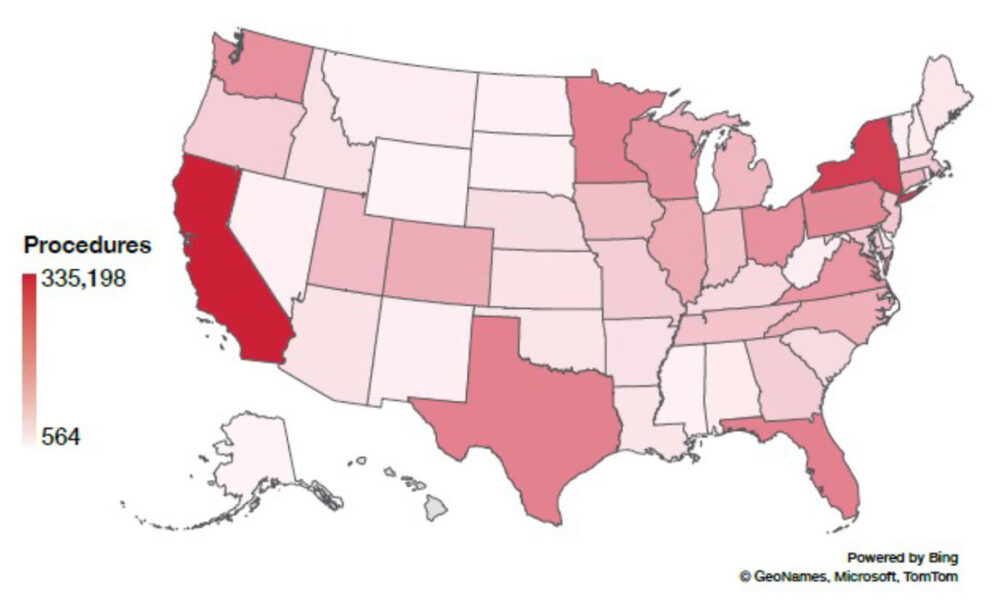 Source: American Academy of Orthopaedic Surgeons. American Joint Replacement Registry (AJRR) 2024 Annual Report. Published March 10, 2025. Available at https://www.aaos.org/registries/publications/ajrr-annual-report/. Accessed March 15, 2025.